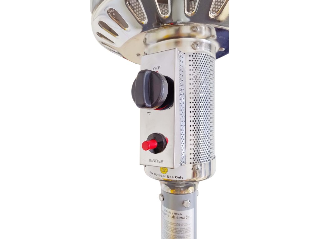S týmto vonkajším propán-butánovým ohrievačom si predĺžite letné večery aj chladnejšie dni. Vďaka praktickým kolieskam ho ľahko premiestnite presne tam, kde ho potrebujete. Bezpečnosť je pre nás prioritou, preto je ohrievač vybavený poistným ventilom, ktorý automaticky uzavrie prívod plynu v prípade pádu. Elegantné lakované strieborné prevedenie skvele doplnia vašu terasu či záhradu. V balení nájdete všetko príslušenstvo na pripojenie k 5 kg aj 10 kg propán-butánovej fľaši. Plynulá regulácia výkonu v rozsahu 5-12 kW vám umožní nastaviť si ideálnu teplotu.