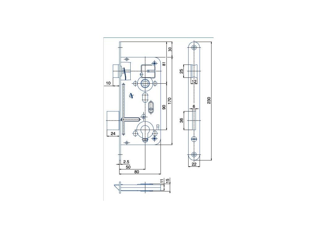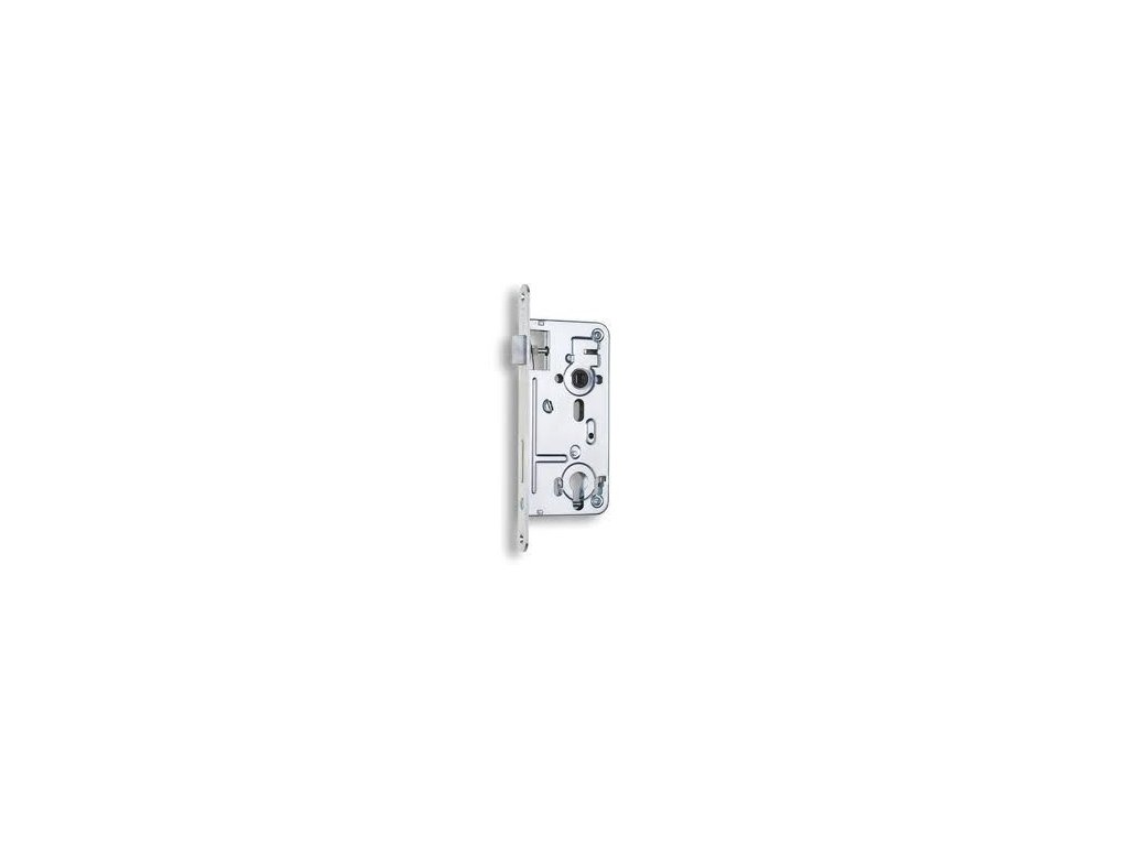 Vložkový zámok dvojzápadkový s prevodom. Jazýček je možné prispôsobiť na pravé alebo aj na ľavé dvere.