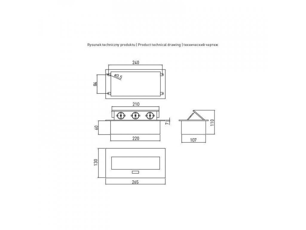 Sada troch napájacích zásuviek 250V AC / 16A s uzemnením v kryte ukrytom v hornej časti. Zariadenie je určené na inštaláciu na konferenčné stolíky, dosky kancelárskeho a kuchynského nábytku. Vyžaduje minimálne množstvo priestoru pod doskou a má výsuvný panel so zásuvkami